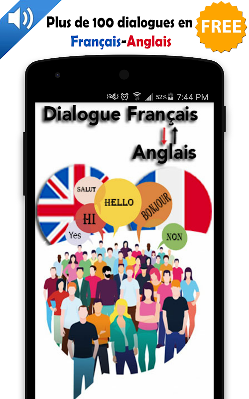 la aplicación de diálogo francés-inglés para mejorar sus habilidades en inglés y francés. los diálogos es un medio de comunicación que te ayuda a aprender el idioma de manera rápida y eficiente con los diálogos que puedes comunicarte fácilmente con los extranjeros.