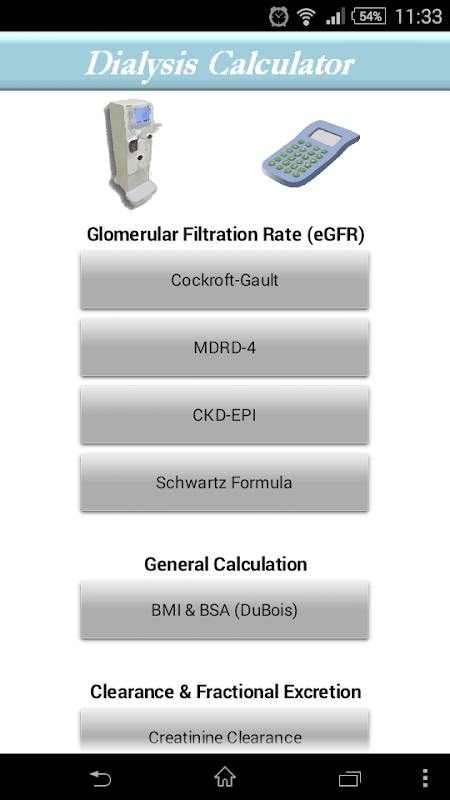 La diálisis Calculator es un software que permite realizar todos los cálculos Asociada a la diálisis (hemodiálisis y diálisis peritoneal).