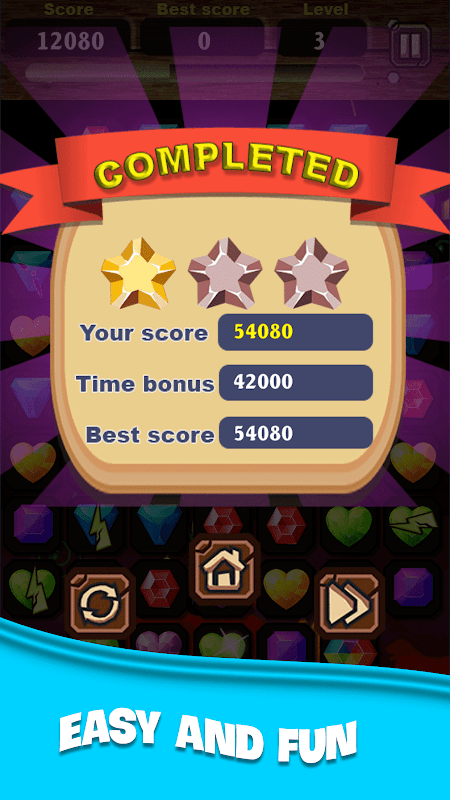 Combina 4 gemas para crear una Gema Explosiva que explote las joyas cercanas, y 5 gemas para un Diamante Estrella que elimine las gemas seleccionadas. A veces, las Gemas Relámpago ocupan una fila o columna entera de joyas. ¡Y no olvides la Piedra Definitiva: combina 2 Diamantes Estrella para completar el nivel!