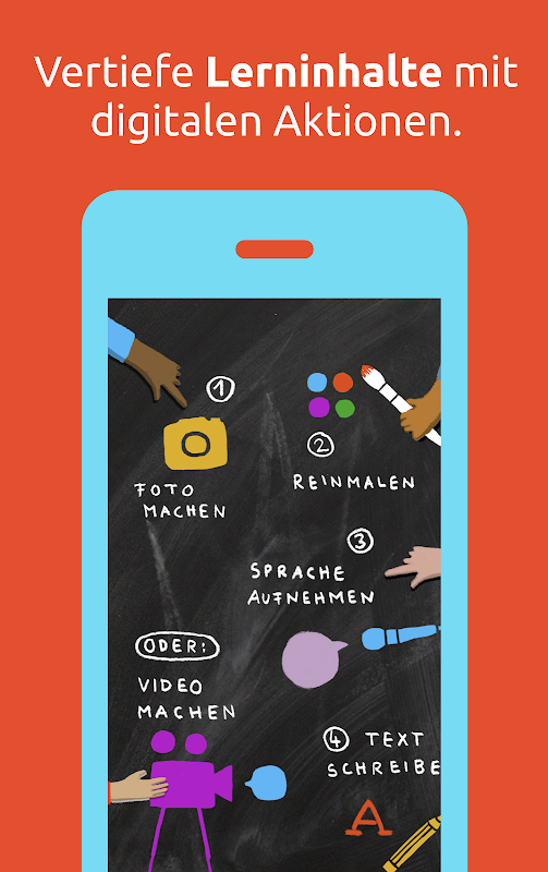 ► Capacitación en competencia mediática: los niños reciben capacitación mediática adecuada para su edad a través de la aplicación, en la que conocen el teléfono inteligente o la tableta como herramienta. De esta manera, se convierten en productores de medios activos y reflexivos que utilizan sus habilidades técnicas con confianza y competencia.