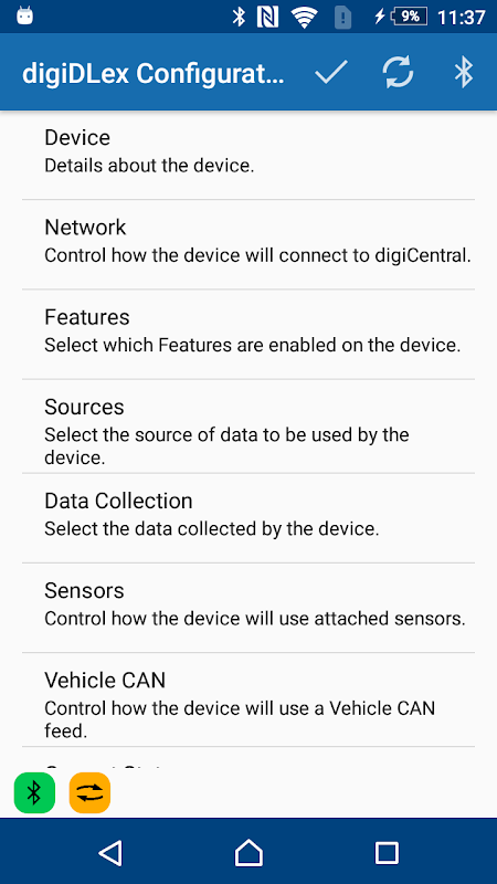 Configure el dispositivo Tachosys digiDLex través de una conexión bluetooth.