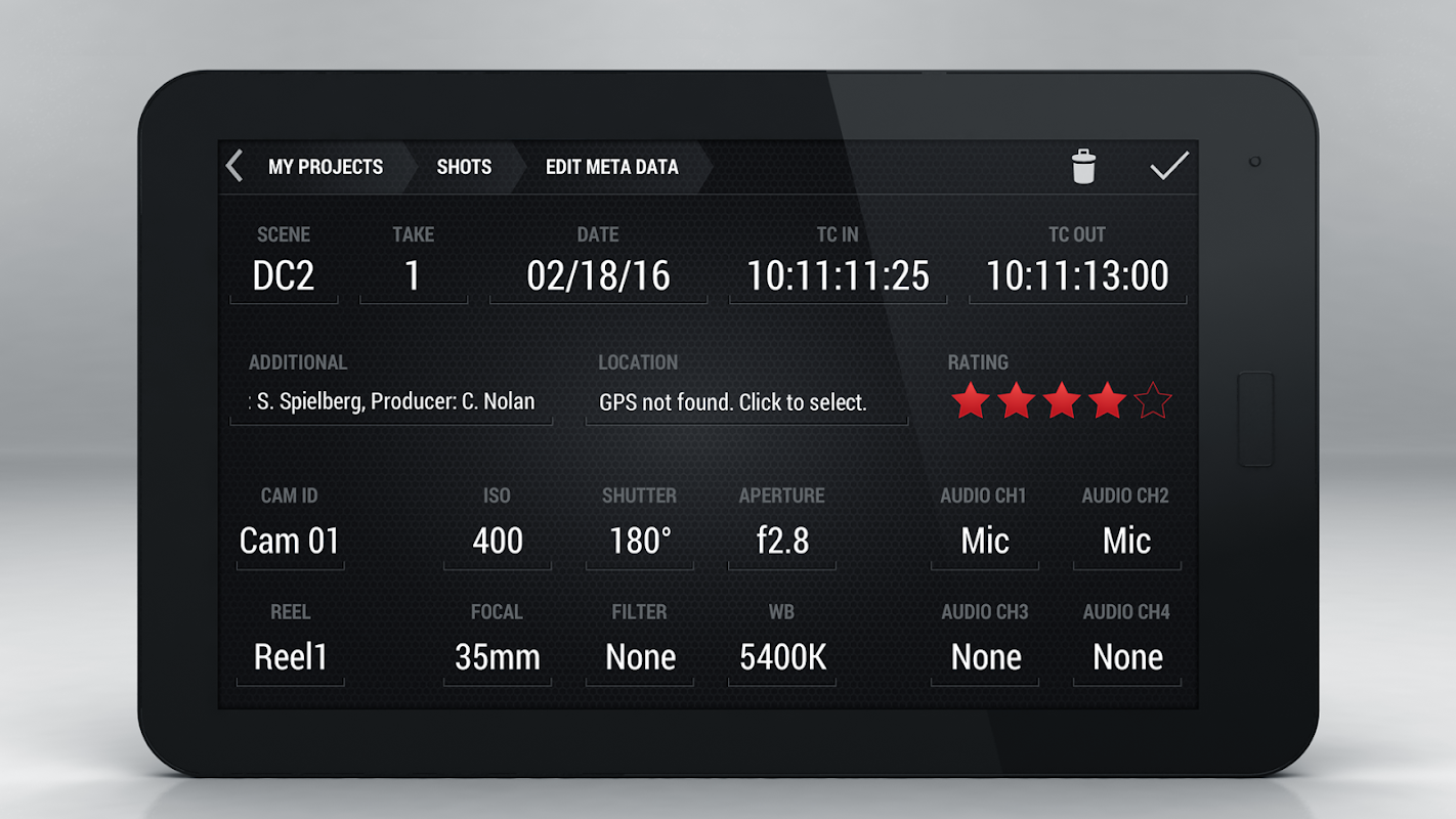Digital Clapper has become much more than just a Clapper. New version features a completely new logging and data management system for your productions, with complete control over your camera meta data.