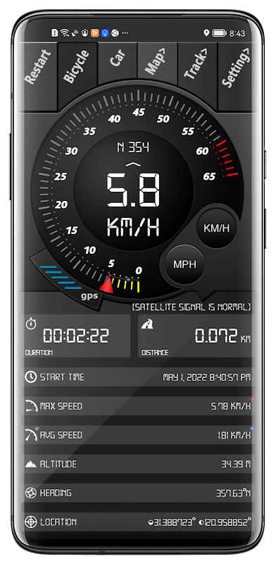 Velocímetro del coche y seguimiento de su ruta, guardar su ruta, reproducir su ruta.