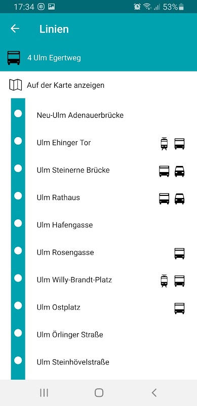 El sistema de información gratuito para el transporte público en Ulm.