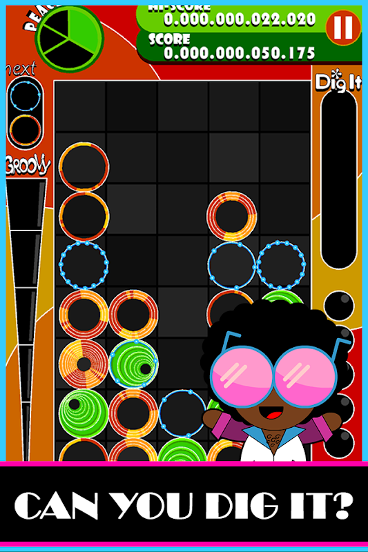 En Disco Stack tienes que juntar tres o mas fichas del mismo tipo y color para hacerlas subir de nivel.
