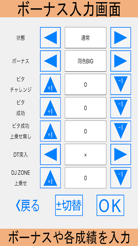 総ゲーム数やARTゲーム数、各種小役をこの画面で入力して下さい。