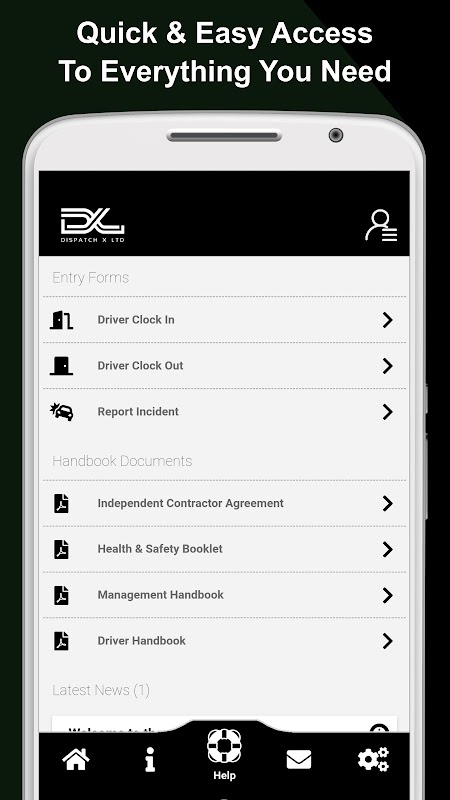 La aplicación oficial de Dispatch X Ltd permite a los conductores acceder a sus facturas, cambiar su información personal, ver manuales, enviar los formularios diarios requeridos y recibir actualizaciones y notificaciones de los gerentes asignados.