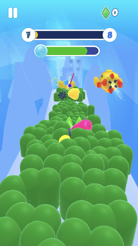 Explore the underwater world, сollect bubbles and crystals, avoid dangers!