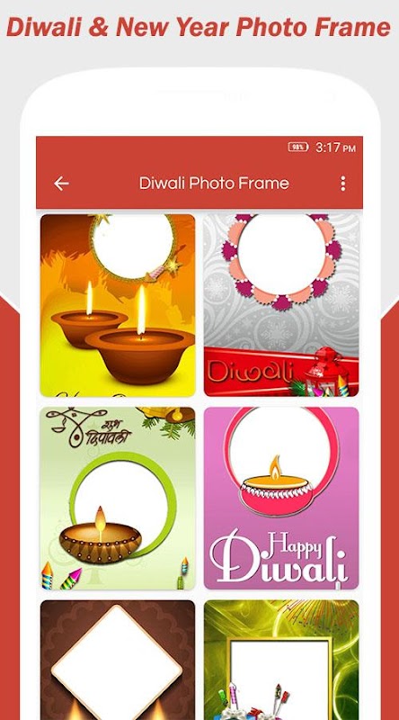 -> Save your new edited Diwali frame images and share it instantly on social networks.