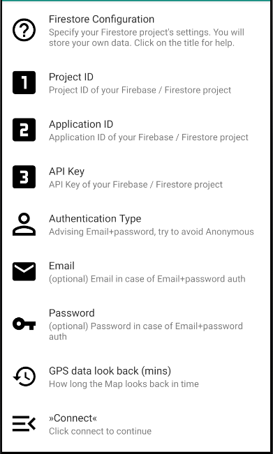 Como parte de un conjunto de aplicaciones, esta aplicación administra ubicaciones de activos compatibles con la aplicación complementaria DIYGPSTracker. Consulte el sitio web de la aplicación para obtener más información. La filosofía de la aplicación es Do-It-Yououself: puede necesitar algo de experiencia técnica, pero todos los datos grabados están gobernados y administrados por usted. La aplicación no registra datos en otras bases de datos que no sean su propio Firestore.