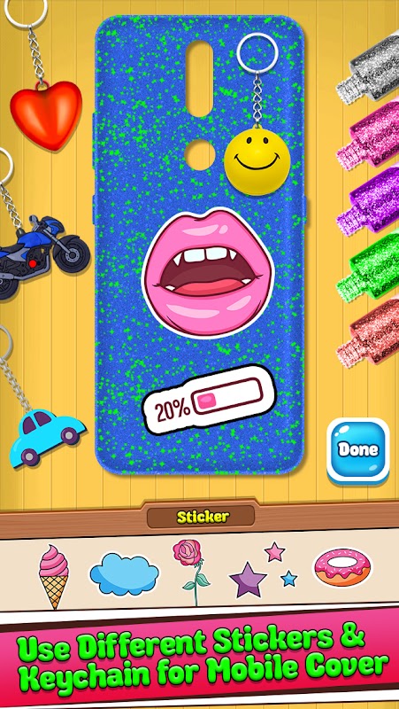 Sé creativo y descubre lo fácil que es hacer una hermosa funda para teléfono. Este juego de diseño de carcasas de teléfonos permite desarrollar la creatividad e impresionar a las personas con su imaginación. Juega con divertidos emojis y pegatinas de diseño para crear fundas protectoras para el teléfono a tu manera. Selecciona el teléfono y personaliza su cubierta para que tu teléfono se vea súper bonito y único. Rocía un poco de color en la carcasa para mostrar tus habilidades para colorear y hacer que tu teléfono se vea hermoso. El efecto de brillo y brillo puede agregar atracción al diseño.