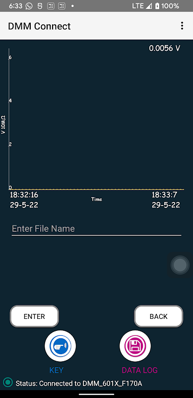Las lecturas del multímetro digital se muestran, registran y analizan mediante la aplicación DMM Connect. Las diversas funciones de la aplicación son las siguientes: