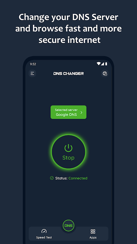 Con la aplicación DNS Changer, puedes encontrar el servidor DNS más rápido y conectarte a él con un solo toque.