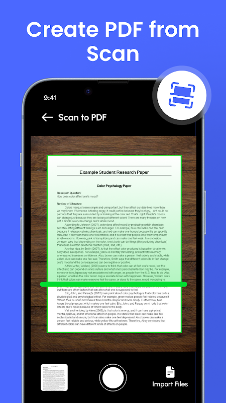 Captura recibos, notas, tarjetas de identificación o documentos en papel con tu cámara y conviértelos en PDF nítidos y de alta resolución.