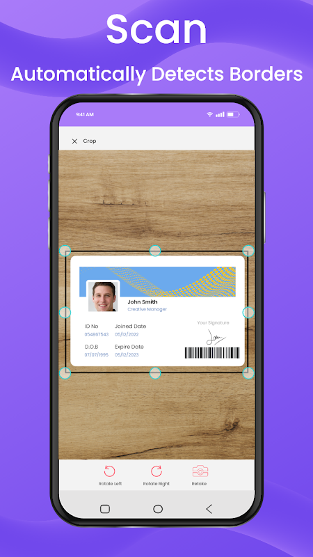 Tome una foto del papel, el escáner de la cámara detectará automáticamente los bordes fácilmente y tendrá que configurar los marcos de su foto, libros o documentos en papel, luego escanear y luego guardar los datos descriptivos en un archivo PDF formal usando la aplicación de escáner de papel.