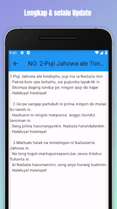En el libro original, Doding Simalungun está equipado con notas musicales y notas numéricas. En futuras actualizaciones haremos que las funciones de la aplicación doding sean aún más completas con notas musicales de doding aleluya y notas numéricas de doding aleluya.