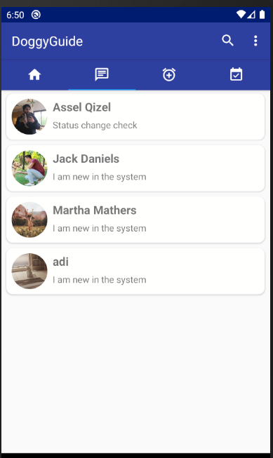 The purpose of our app is first to help the dog owner with daily care, such as alerting him to feed the dog or take him out for walk. Secondly, the goal is to help the dog owner to communicate with other dog owners at the Technion in a convenient way, such as finding someone who can Keep the dog when needed or "play dates" with other dogs. And finally, its goal is to conveniently link the dog owner to the organization, such as announcing vaccines, training or treatments that should occur soon.