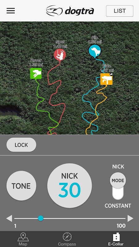La aplicación funciona con el Dogtra Pathfinder y lleva el seguimiento GPS y E-collar.