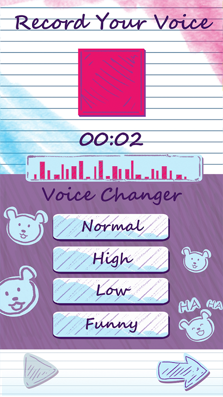 After scanning you can record a short, 30 sec message. View your recording while your Doodle Bear moves its mouth to the recording and shares a unique dance! Choose from 4 voice modulators to transform the sound of your recording.