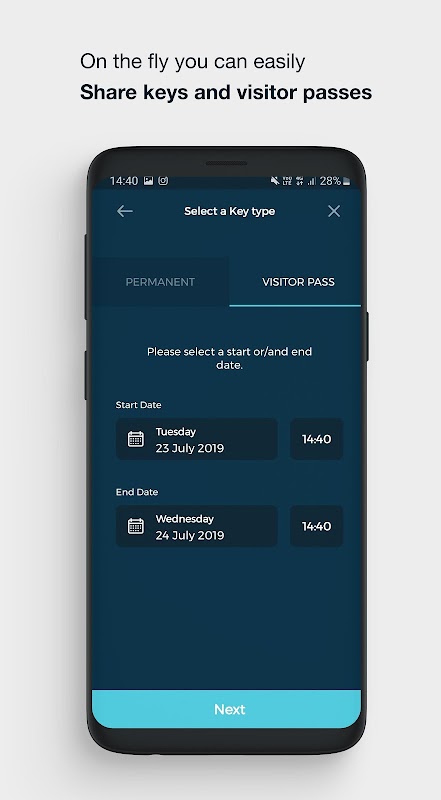 El acceso se puede compartir más rápido y más fácil que nunca: todo lo que necesitamos es su dirección de correo electrónico para configurar todo. Pídale a su gerente de edificio que comparta una clave, usted o un administrador pueden compartir claves desde dentro de la aplicación.
