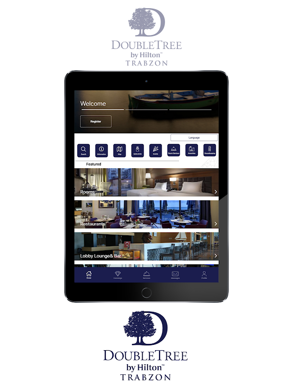 Bienvenido a Double Tree Trabzon, con nuestra aplicación móvil puede enviarnos su check-in móvil, reserva de restaurante, toalla para su habitación, una buena cena, servicio de habitaciones, taxi o cualquier otra solicitud directamente. Planeamos brindarle una magnífica experiencia de alojamiento con la gran satisfacción de los clientes de nuestro hotel. Brindamos la mejor experiencia para nuestros huéspedes.