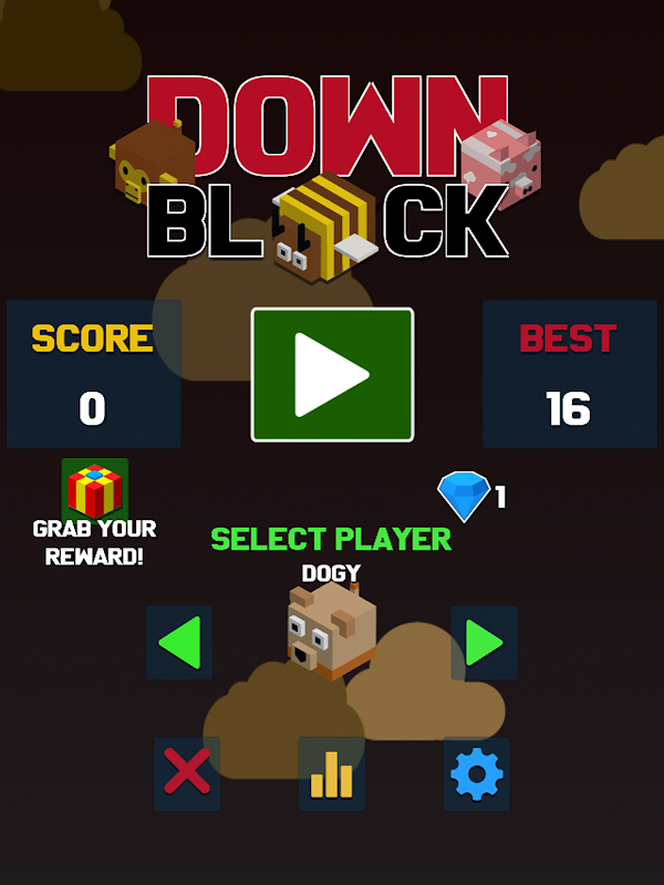 Down Block es un juego arcade de ritmo rápido. Agarra estrellas, potenciadores, diamantes y la puntuación más alta.