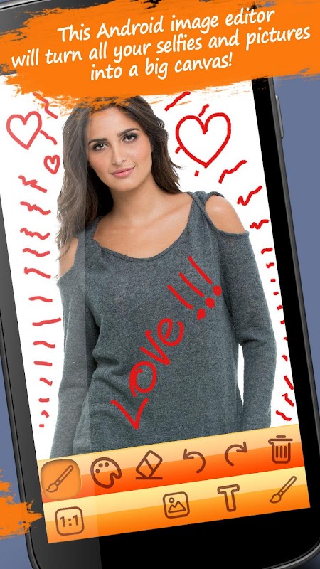 Obtener aplicación de la cámara y empezar a dibujar en las imágenes desde la galería! Añadir palabras a fotografías rápida y fácilmente! Este editor de imágenes Android ™ a su vez, todas sus imágenes en un lienzo grande! Diviértete con este sorteo en la foto del stand de la cámara y decorar sus imágenes! Descargarlo en sus dispositivos móviles y dibujar sobre las imágenes y añadir texto de hoy!