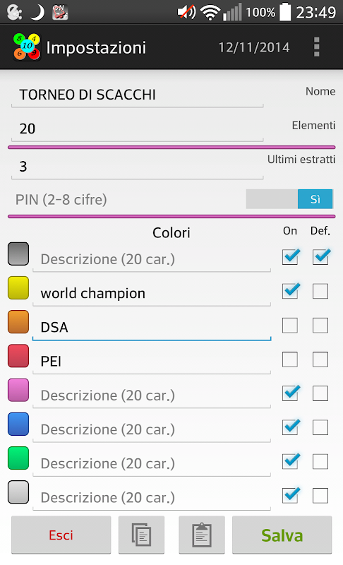 - There is an empty group that can bechanged and a some default group (BINGO and POKER) not editables
