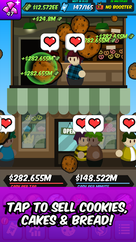 Cookies, cakes, pies and croissants! It's fun to bake sweets & goodies, and make tons of money while you're at it! Spend your hard-earned cash into building up your tiny bakery into a bakery empire. Tap, tap, tap to sell your pastries and become the richest baker of all time in this idle clicker game!