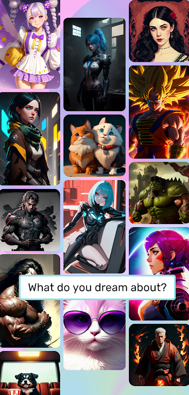 Lo que diferencia a Dreamify - Generador de arte con IA es su capacidad para generar arte a partir de las indicaciones del usuario. Con esta función, puede ingresar su propio texto, palabras clave o frases, y dejar que nuestro sistema de inteligencia artificial genere una obra de arte única y personalizada basada en su entrada. Esta función es perfecta para la escritura creativa, la poesía o simplemente para expresar sus pensamientos e ideas de forma visual.