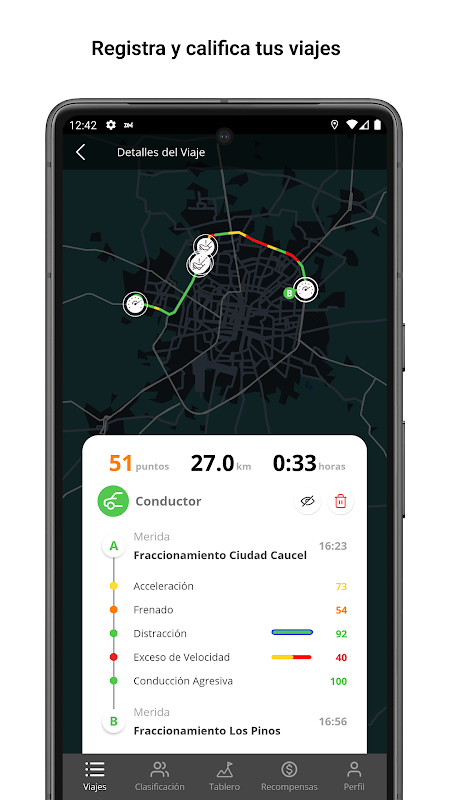 La app te permite analizar cada aspecto de tu conducción, desde la velocidad hasta el frenado y las curvas, para identificar oportunidades de mejora. Con esta información, podrás adaptar tu estilo de manejo a uno más seguro y eficiente, ayudándote a prevenir accidentes y mantener el control en todo momento.