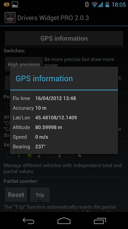 Un widget para los conductores, haciendo uso de los GPS en su dispositivo con el fin de realizar un seguimiento de los parámetros de kilometraje, velocidad y otros de su coche o en bicicleta.