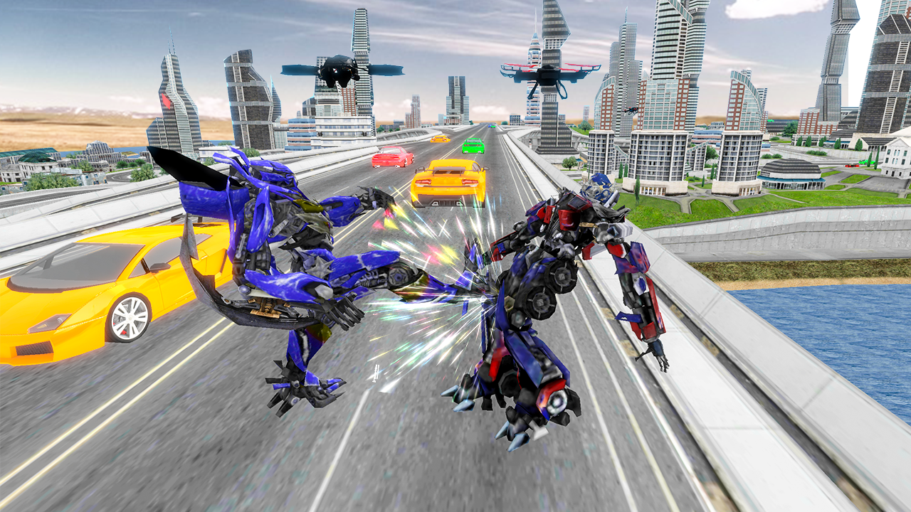 Show your muscles in war of drones stealth aero fighters and air battle of robot warriors while playing mec robot battle game as a finest mecha warrior of Drone robot war mech game in the Robot City of mechanical robots arena of giant super monsters mech battle in the new idea of DRONE ROBOT AIR TRANSFORM BATTLE GAME.