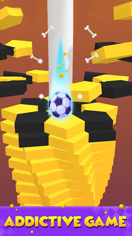 Press and hold on the screen to let the ball fall down so that the ball doesn't touch the black stacks! Hold for as long as possible to break all blocks and overcome the obstacles, through revolving helix platforms to reach the end 👌