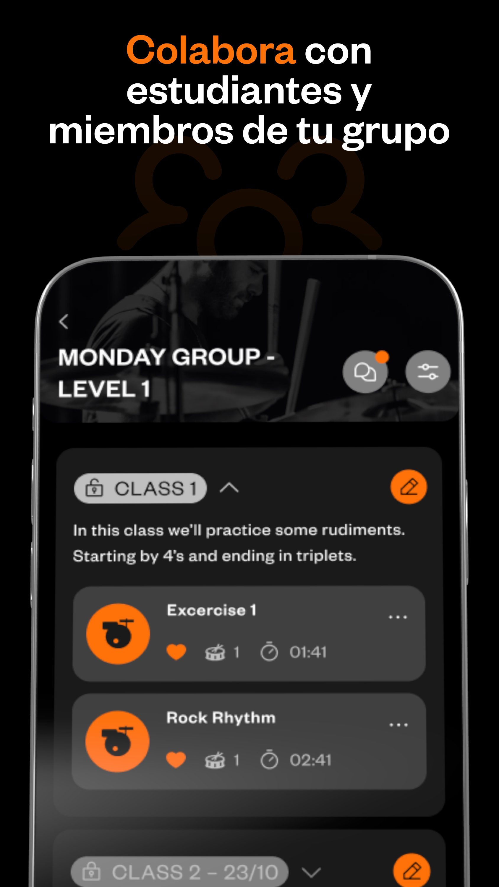Ejercicios de Batería: Crea, comparte y gestiona ejercicios con facilidad.