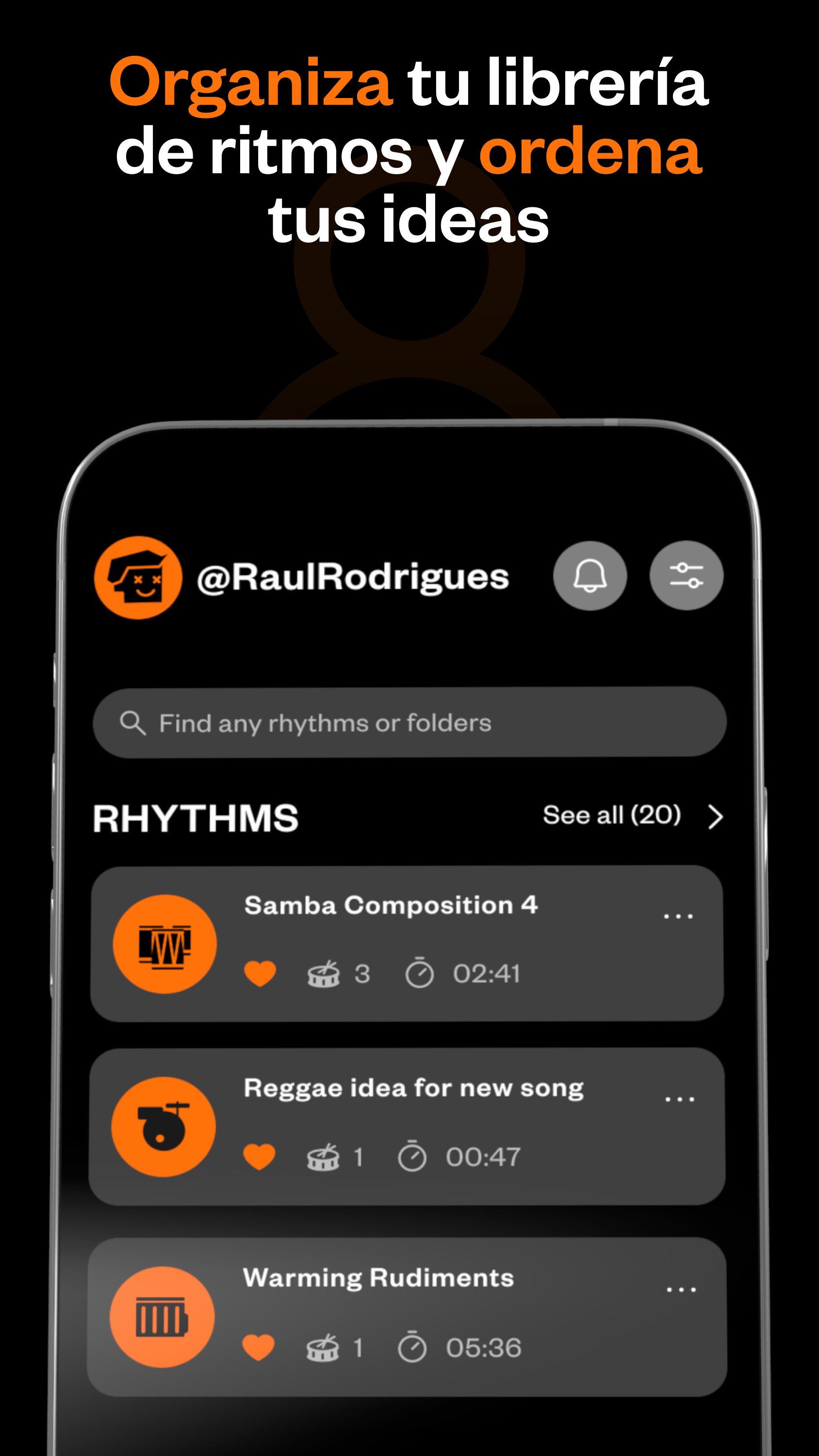 Organiza tus Notas Musicales: Mantén tus ritmos, arreglos, grabaciones y ejercicios organizados.