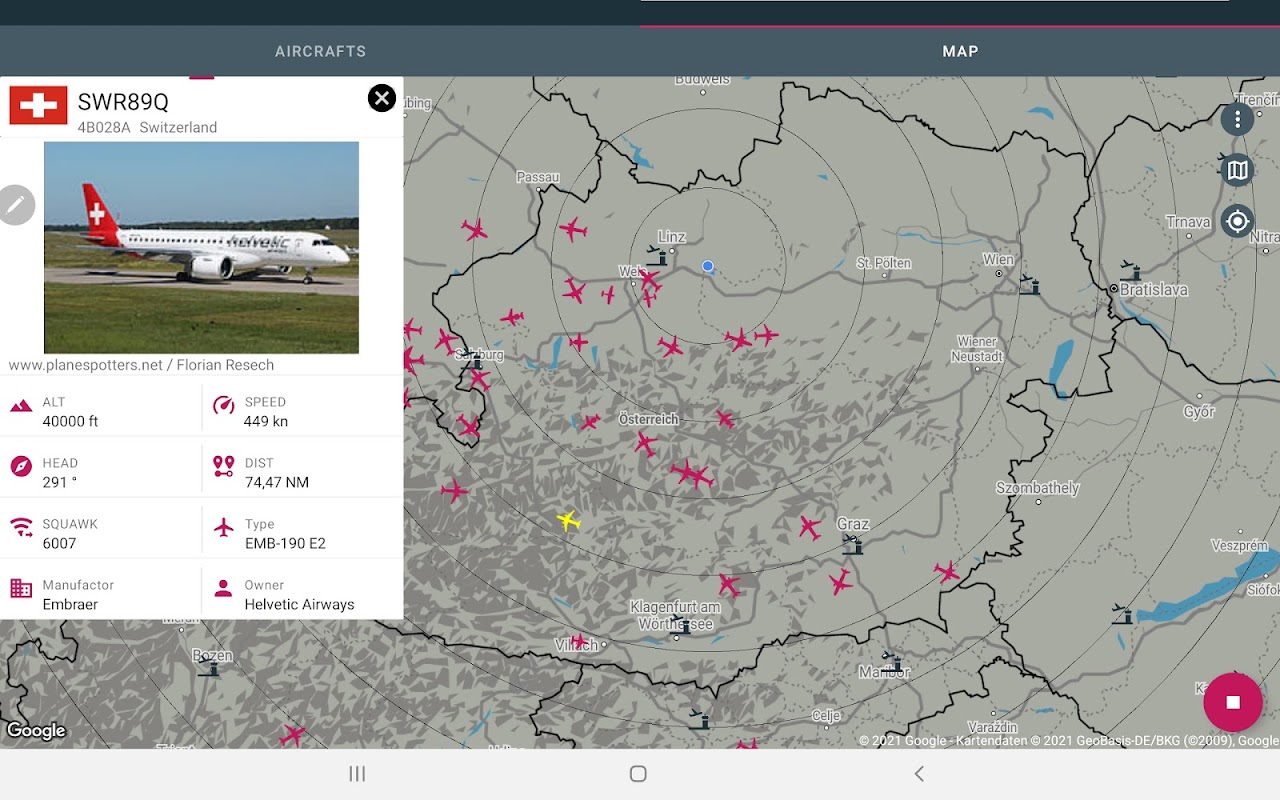Convierta su dispositivo en combinación con una memoria USB DVB-T (RTL-SDR) en un receptor ADS-B real y muestre las posiciones de las aeronaves en un mapa.