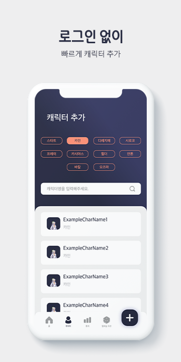 - 캐릭터 탭