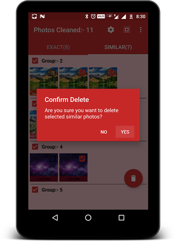 - Después de completar sus vacaciones, puede decidir qué foto es mejor entre las poses similares, Same Photo Delete identifica y le da la oportunidad de eliminarlos con un solo clic para que pueda guardar su memoria.