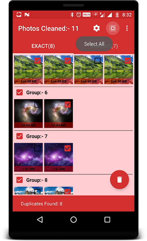 -> Selecciona todas las imágenes duplicadas o imágenes similares que deseas eliminar de tu galería