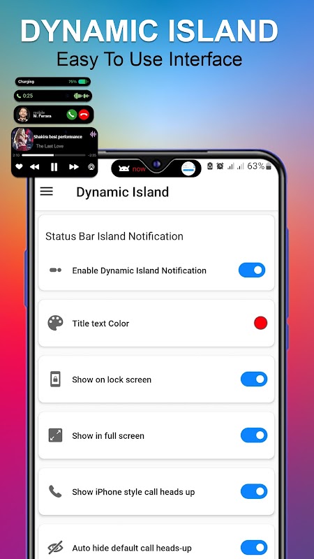 Convierta el estilo de notificación de su teléfono inteligente Android para que se vea como un iPhone 14 Promax Dynamic island iOS 16 con esta aplicación Dynamic Island - iOS 16 notch.