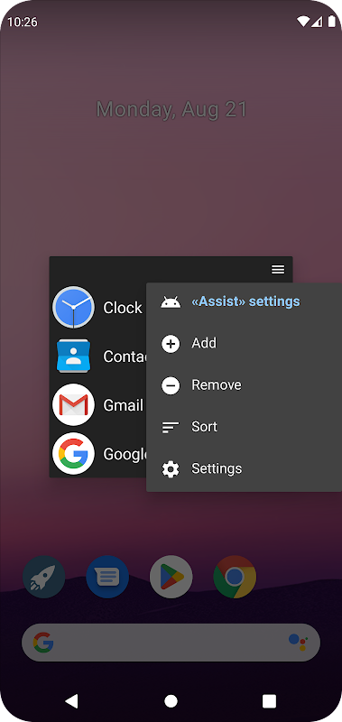 • En teléfonos Pixel con navegación por gestos, la app se puede configurar como «Asistente digital» y se inicia deslizando el dedo en diagonal desde la esquina inferior. Para más información, consulta aquí: https://dynamicg.ch/help/098