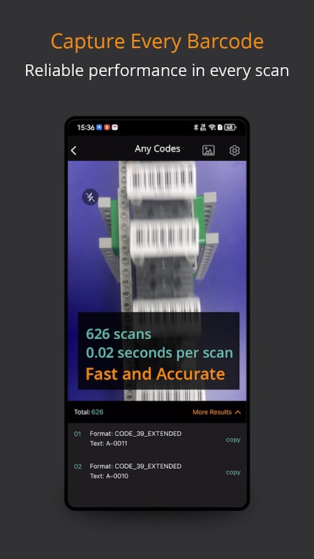 ✔ Lee códigos de barras desde diferentes orientaciones y posiciones