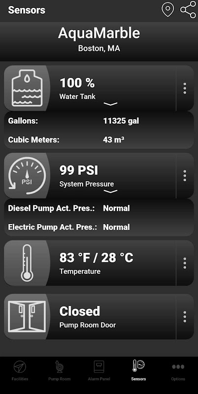 + Verifique el estado de su panel de alarma contra incendios y los componentes de la sala de bombeo en tiempo real.