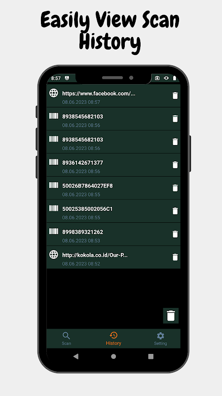 5. Historial y favoritos: realice un seguimiento de su historial de escaneo y marque los códigos QR que usa con frecuencia con nuestra función Historial y favoritos. Esto asegura un fácil acceso a la información esencial y evita la molestia de volver a escanear los mismos códigos QR repetidamente.