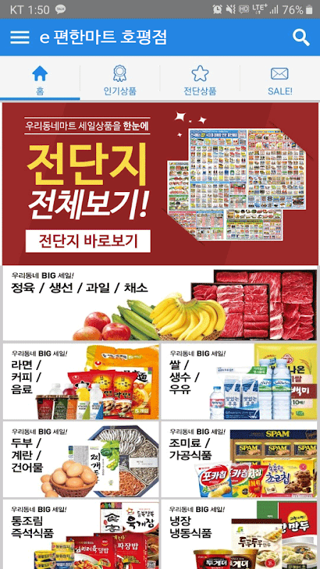 -전단지: 지면 전단지와 동일한 상품을 모바일을 통해 매일 업데이트됩니다.