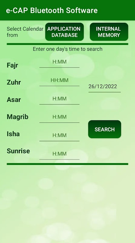 Puede usar el "software Bluetooth e-CAP" para obtener los tiempos de oración de hoy y también para configurar las pantallas de tiempo de oración de e-CAP que tienen conectividad bluetooth.