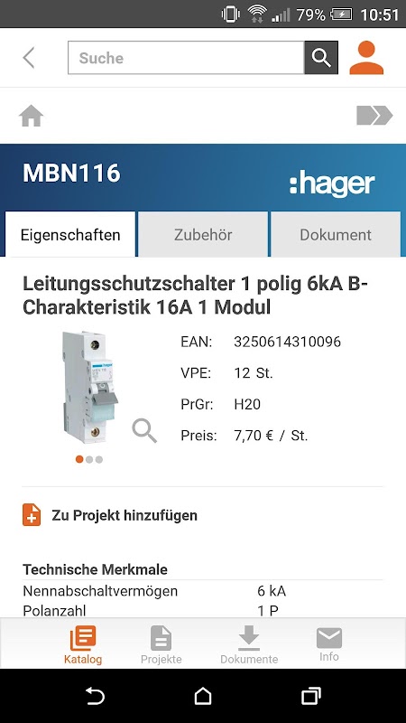 Die e-Katalog App unterstützt zudem das Arbeiten mit dem Tool „Projektliste“. Einzige Voraussetzung für die Nutzung dieses Tools ist ein kostenfreies myhager-Konto. Registrieren Sie sich hierfür einfach auf hager.de. Die Projektliste wird automatisch aktualisiert, ganz egal ob der Zugriff über die e-Katalog App mit einem mobilen Endgerät oder über die Website mit Ihrem myhager Konto erfolgt.