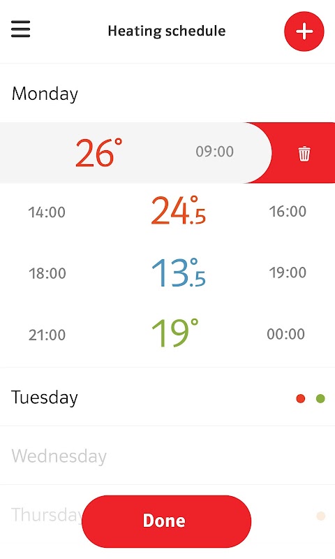 - Turn your heating and hot water off or on, up or down and override schedules if your plans change.