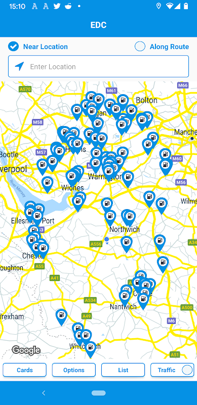 La mejor forma de encontrar estaciones de repostaje que acepten sus tarjetas de combustible. Ya está aquí la nueva y mejorada aplicación localizadora de estaciones de servicio e-route. Si sus tarjetas de combustible son compatibles con las redes de Esso, BP, EDC, y DKV, la forma más rápida de encontrar la estación de servicio más próxima y planificar sus trayectos con la máxima eficiencia es mediante e-route.